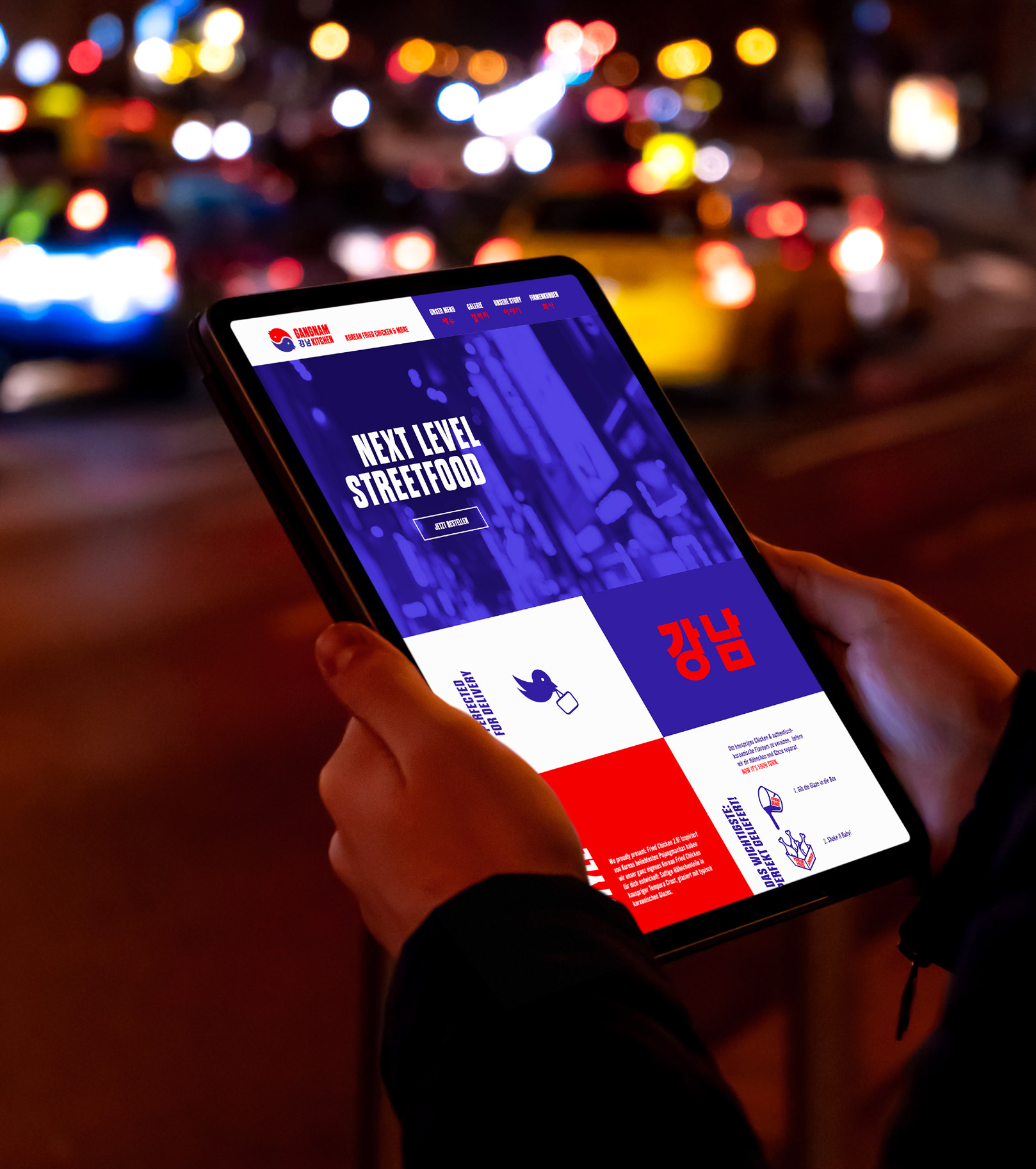 We’ve created various brands for the delivery service Honest Food. Gangnam Kitchen, for instance, is a restaurant which specializes in Korean-style fried chicken. The iconic street-style brand we created was inspired by Korea’s national flag and the vibrant nightlife and street-food kitchens in Seoul’s district of Gangnam.